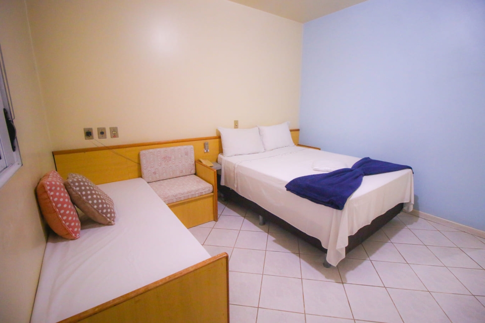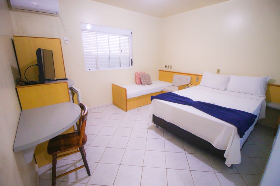 Sinta-se à vontade em um de nossos quartos, todos com banheiros privativos e TV a cabo. Oferecemos Wi-Fi gratuito para que você esteja sempre conectado. Além disso, o hotel conta com estacionamento gratuito para sua comodidade.